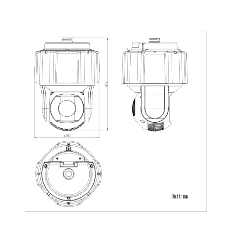 iDS-2DF8432IXS-A/SW(T5)(B) 海康威视400万像素1/1.8英寸CMOS 32倍变焦星光级8寸红外人脸比对全结构化无线热点探测一体化智能球机 外形尺寸: