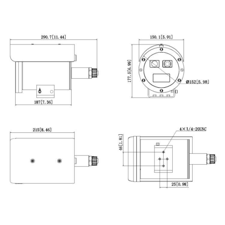 HM-TD2568T-15/T1 海康微影测温型15mm定焦热成像双光谱防爆小场景筒型网络摄像机 外形尺寸: