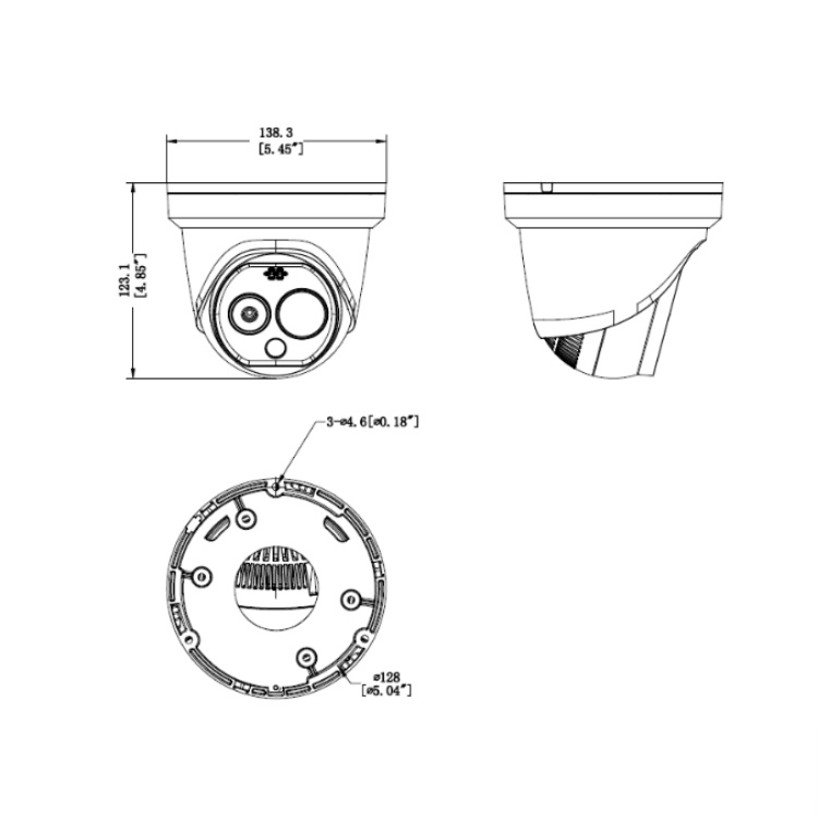 HM-TD1228-3/QA 海康微影吸烟火点烟雾检测热成像双光谱声光警戒半球网络摄像机 外形尺寸: