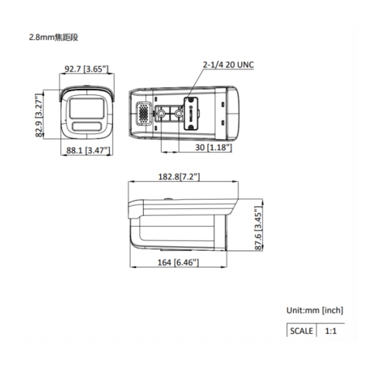 DS-2CD3T47S(D)WDV3-LT 海康威视400万1/1.8英寸CMOS定焦臻全彩2.0筒型网络摄像机 外形尺寸: